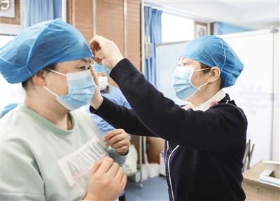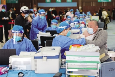在接種臺前,醫(yī)護(hù)人員分工明確,核驗接種人群身份信息、詢問病史和疫苗接種情況,每個環(huán)節(jié)有條不紊地進(jìn)行著。