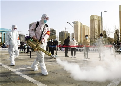 志愿者對戶外通道進(jìn)行消殺