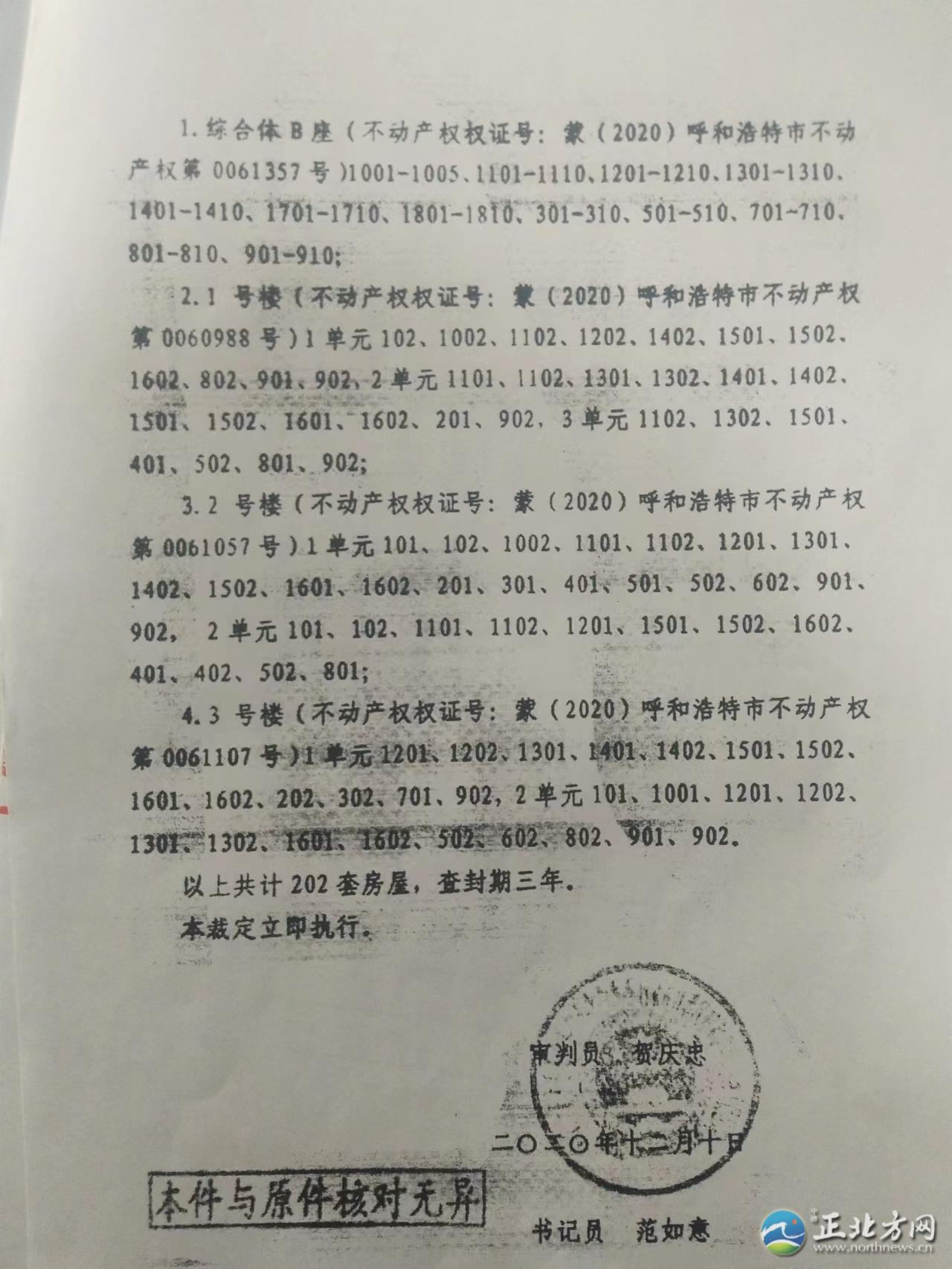 “我們小區(qū)2019年交房,2021年11月份,小區(qū)終于能辦房本了??墒窃谵k理房本的過程中,我們得知小區(qū)住宅樓100多套房子被多個(gè)法院查封了,小區(qū)辦房本的事也就停了下來。現(xiàn)在,我們找開發(fā)商內(nèi)蒙古世華房地產(chǎn)開發(fā)有限責(zé)任公司(以下簡(jiǎn)稱世華房地產(chǎn)公司)問詢?yōu)槭裁捶课荼徊榉猓螘r(shí)能夠解封,可是開發(fā)商躲著不見我們!這事究竟歸誰管呢?”近日,呼和浩特市玉泉區(qū)上國名都業(yè)主向北方新報(bào)正北方網(wǎng)記者反映。