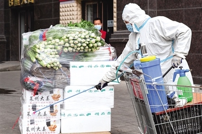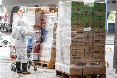 據(jù)了解,家家悅確保每日運送新鮮瓜果外,倉庫里還備齊了日用品、零食等居民生活必備品。每天一早,倉庫工作人員會按照線下各實體店所需進行選品,分揀員認真分揀,運輸人員按時送達。商品抵達實體店后,實體店工作人員對運貨車輛及所運物品進行消殺,再上架供超市工作人員按照訂單進行分包,收銀臺工作人員掃碼打印出支付賬單,由配送員送到居民手中。
