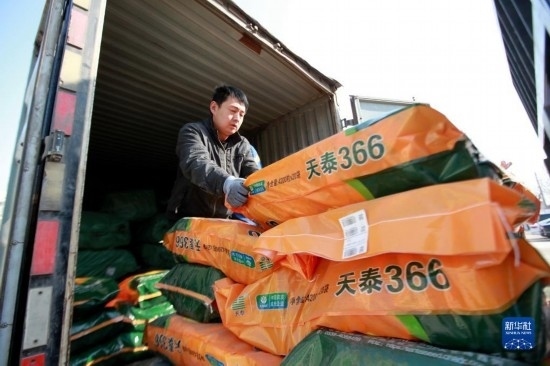 2月16日,在山東省臨沂市平邑縣一家種業(yè)公司,工人將玉米種裝車外運。