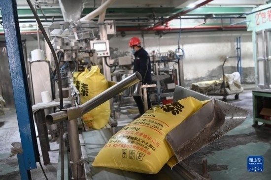 2月16日,北大荒集團五大連池農場科技服務中心工人在混拌肥料,為春耕做準備。