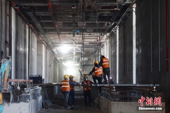 2月20日,施工人員在北京地鐵12號線東壩車輛段施工。北京地鐵12號線正線全長為29.6km,西起西四環(huán)四季青橋南,東至東壩北街,途經(jīng)海淀、西城、東城、朝陽四個(gè)行政區(qū),全線共設(shè)21座車站,其中換乘站15座,全線建成通車后,將與4號線、5號線、8號線等12條線路實(shí)現(xiàn)換乘。當(dāng)前12號線車輛陸續(xù)進(jìn)場,工程正在加速推進(jìn)。中新社記者 富田 攝