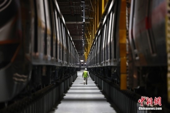 2月20日,工作人員在北京地鐵12號線東壩車輛段巡查列車。北京地鐵12號線正線全長為29.6km,西起西四環(huán)四季青橋南,東至東壩北街,途經(jīng)海淀、西城、東城、朝陽四個(gè)行政區(qū),全線共設(shè)21座車站,其中換乘站15座,全線建成通車后,將與4號線、5號線、8號線等12條線路實(shí)現(xiàn)換乘。當(dāng)前12號線車輛陸續(xù)進(jìn)場,工程正在加速推進(jìn)。中新社記者 富田 攝