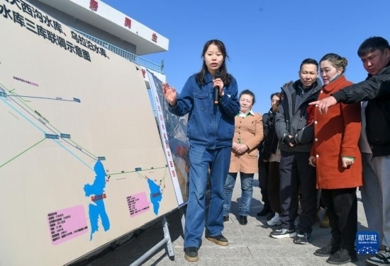 3月22日,在烏魯木齊水業(yè)集團(tuán)有限公司烏拉泊水庫(kù)管理站,工作人員給居民講解烏魯木齊飲用水的來(lái)源。