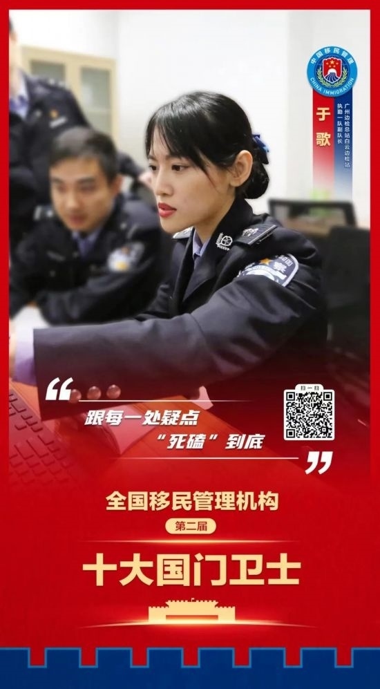 廣州出入境邊防檢查總站白云出入境邊防檢查站執(zhí)勤一隊(duì)副隊(duì)長、一級(jí)警長 于歌(女)