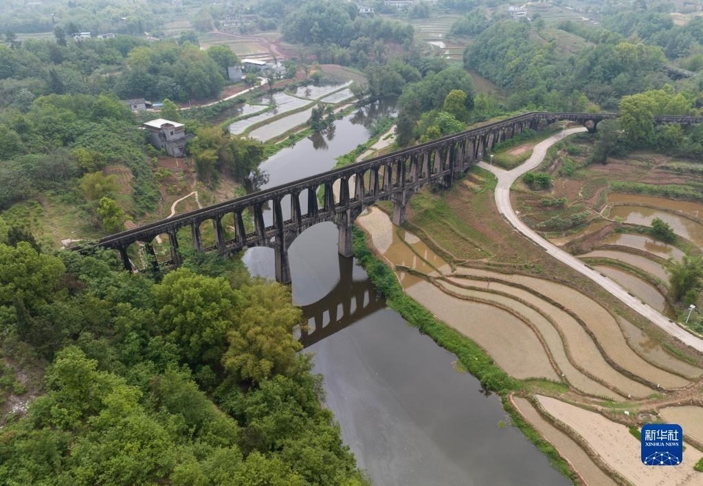 目前,四川省瀘縣正值插秧時(shí)節(jié),有“人工天河”之稱的瀘縣引水渡槽越過山丘、穿過農(nóng)田,仍在引水灌溉中發(fā)揮重要作用。