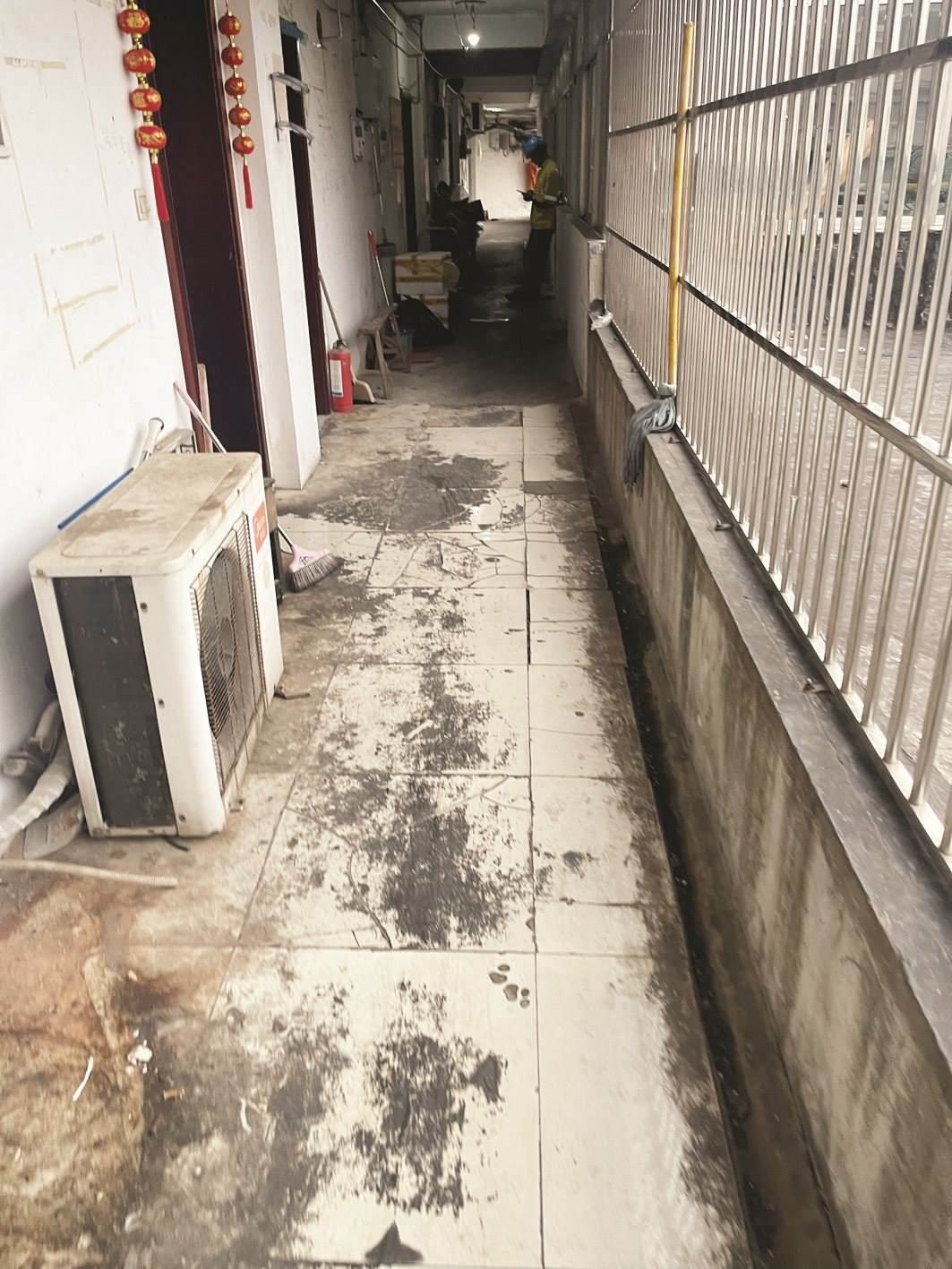 農(nóng)貿(mào)市場的地上油垢厚積