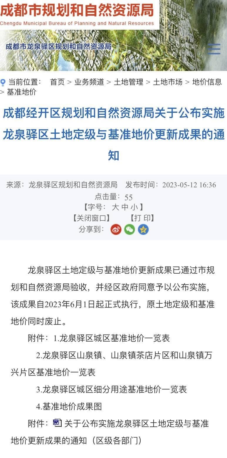 據(jù)悉,成都經(jīng)開區(qū)規(guī)劃和自然資源局門戶網(wǎng)站于2023年5月12日發(fā)布了龍泉驛區(qū)土地定級與基準地價更新成果,此成果嚴格按照《四川省國土資源廳辦公室轉(zhuǎn)發(fā)〈國土資源部辦公廳關于加強公示地價體系建設和管理有關問題的通知〉的通知》(川國土資辦發(fā)〔2017〕33號)文件要求,經(jīng)龍泉驛區(qū)人民政府批準后對外公布,該成果主要內(nèi)容為龍泉驛區(qū)城鎮(zhèn)國有建設用地使用權不同用途評估的平均價格,并未標注“迪士尼預留用地”相關內(nèi)容。