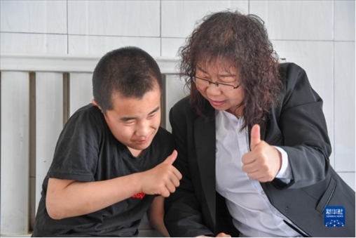 在吉林省四平市鐵西區(qū)郭家店鎮(zhèn)小泉眼村,殘障學(xué)生徐鶴航向前來“送教上門”的特教教師楊麗平問好。雖然徐鶴航的發(fā)音仍有些不太清楚,楊麗平還是開心地高高豎起大拇指,為他“點贊”:“徐鶴航進(jìn)步真大!”今年51歲的特教教師楊麗平就職于四平市聾啞學(xué)校,今年是她任教的第32年,也是她“送教上門”的第8年。每學(xué)期至少一次“送教上門”,平時不定期進(jìn)行視頻教學(xué),楊麗平和學(xué)校其他教師一起根據(jù)每個殘障學(xué)生的不同特點,因材施教,制定個性化教學(xué)方案。楊麗平說:“‘送教上門’雖然辛苦,但作用很大。特教教師用愛幫助殘障學(xué)生學(xué)習(xí)知識,學(xué)會自理,建立自信,更好地融入社會。”
