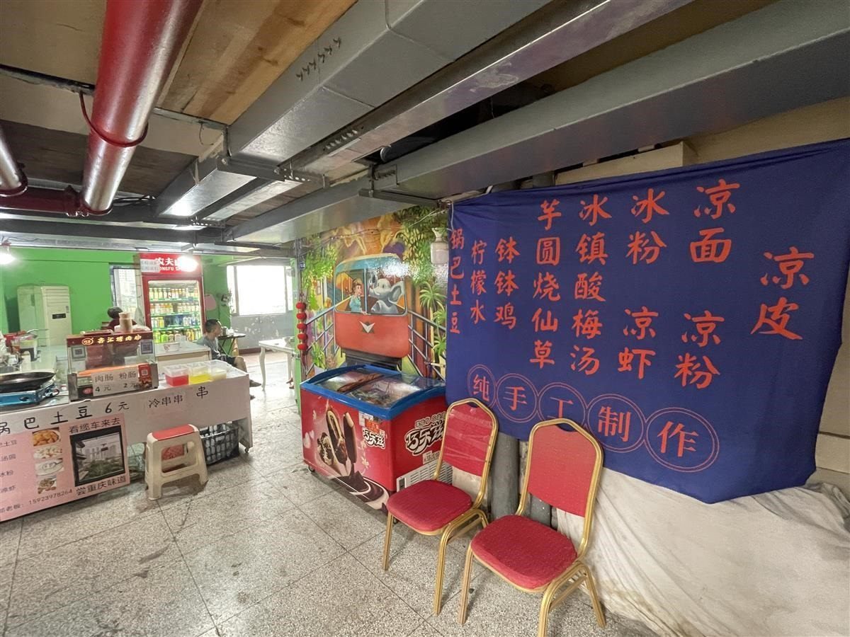 也有居民對(duì)游客持歡迎態(tài)度。從掛有“居民住宅,謝絕參觀”招牌的入口進(jìn)入白象居,是居民樓的第12層,也是游客主要打卡的樓層。這一層均為門(mén)面房,白象居居民在這層開(kāi)有飯店、咖啡店、小賣(mài)部等。在12層中間位置開(kāi)餐館的劉先生告訴極目新聞?dòng)浾?,白象?2層以上是居民樓,游客不能進(jìn)去,游客從12樓只能向下到8樓的平臺(tái)位置。從8樓至12樓,很多房屋都被開(kāi)發(fā)成咖啡屋、民宿等,另有一部分房屋現(xiàn)在還空置出租中。