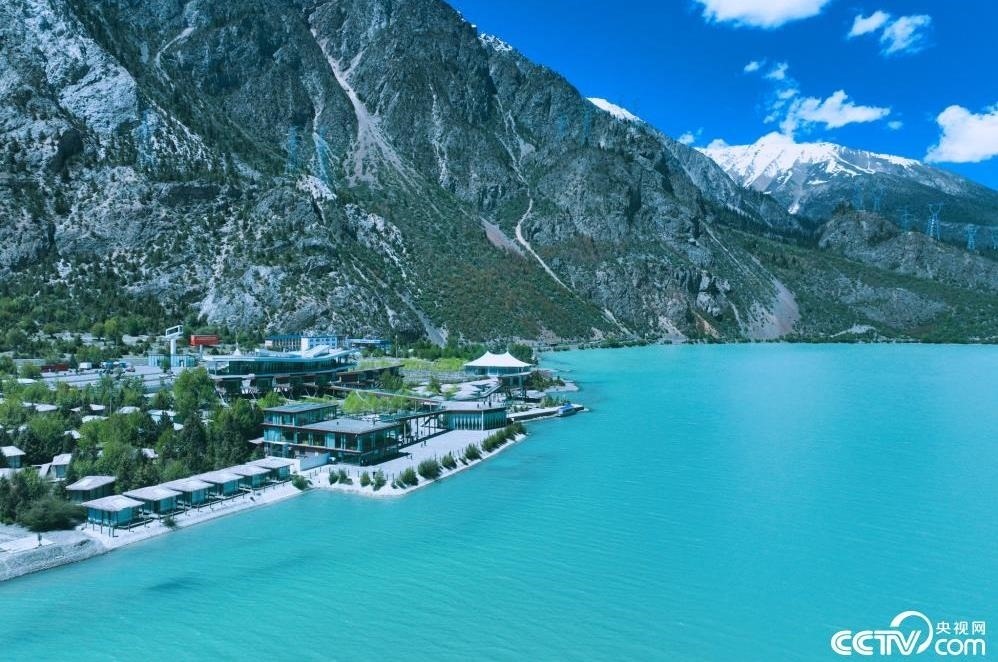 西藏昌都,然烏湖與雪山相映成景,湖面碧藍,氣勢壯闊。