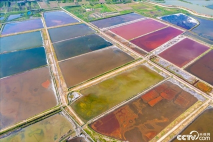 2023年6月14日,山西運(yùn)城,七彩鹽湖呈現(xiàn)出色彩斑斕的景觀,猶如大地調(diào)色板,美不勝收。