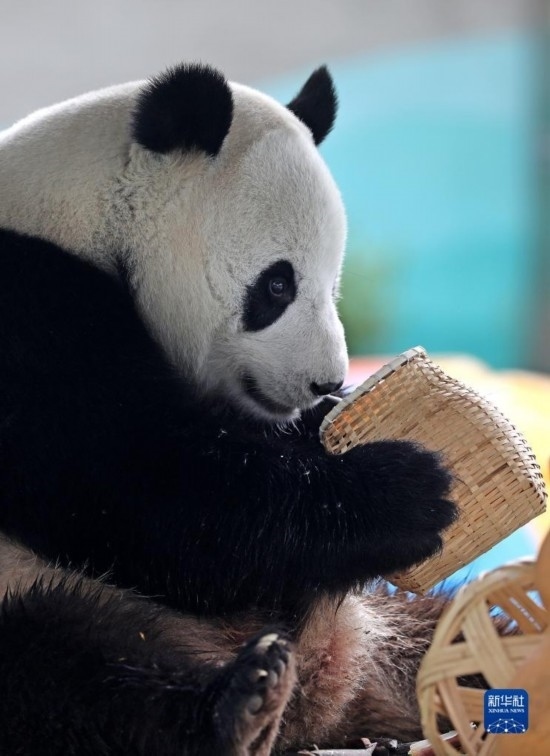 近日,遼寧地區(qū)持續(xù)高溫,在飼養(yǎng)員的精心照料下,鞍山動物園里的5歲大熊貓“剛剛”一邊吹著空調(diào)降溫,一邊享用新鮮竹子、水果、胡蘿卜、蜂蜜等,清涼度夏。