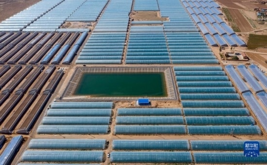 這是9月14日在吳忠市同心縣下馬關(guān)鎮(zhèn)拍攝的設(shè)施溫棚(無(wú)人機(jī)照片)。