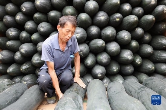 9月13日,村民在貴州省黔東南苗族侗族自治州施秉縣城關(guān)鎮(zhèn)白塘村將收獲的冬瓜裝車,準(zhǔn)備供應(yīng)市場(chǎng)。