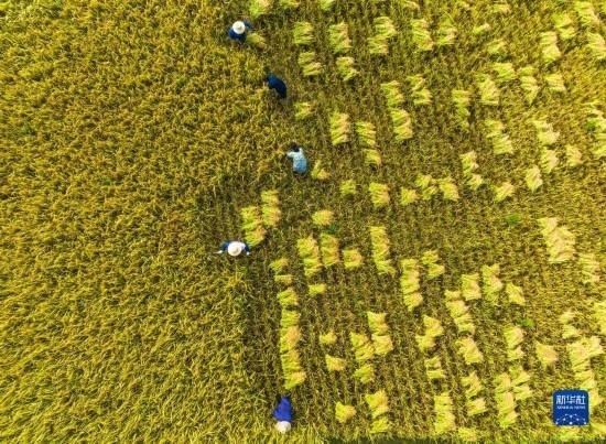 金秋時(shí)節(jié),各地農(nóng)民搶抓晴好天氣忙收獲,田間地頭一派繁忙景象。新華社發(fā)(胡攀學(xué) 攝)