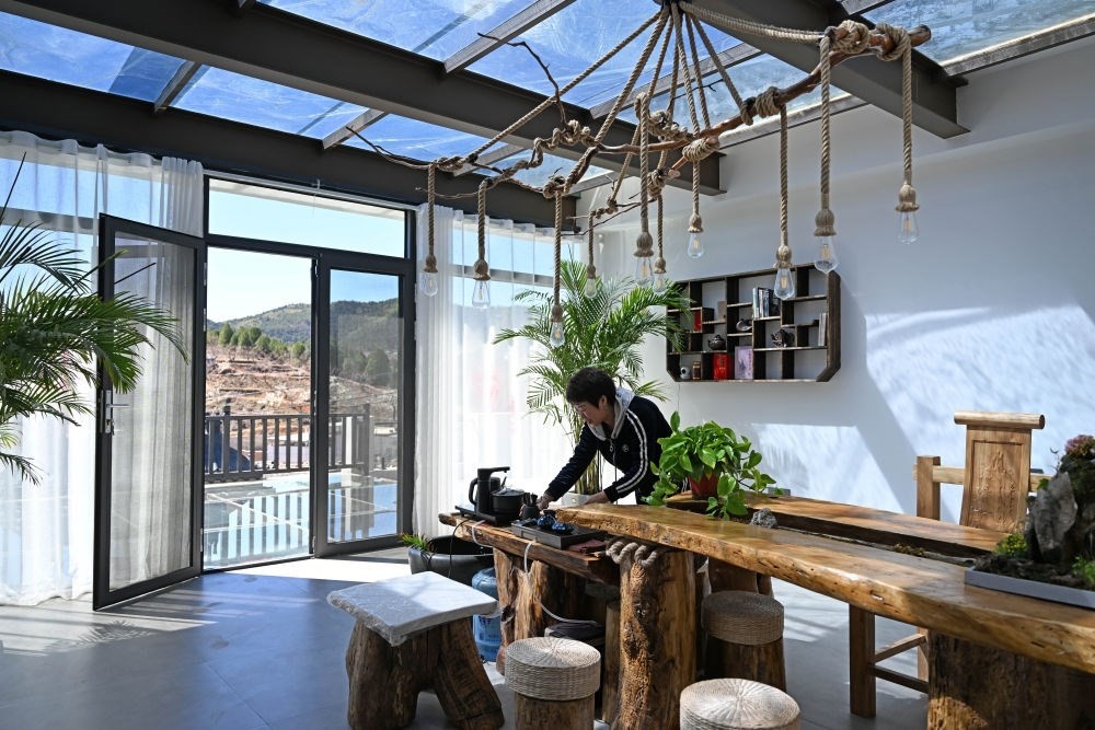 4月7日,天津市薊州區(qū)羅莊子鎮(zhèn)一家民宿的負責人在整理茶具。新華社記者 趙子碩 攝