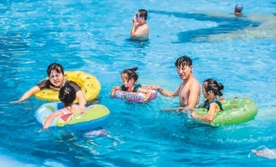 7月1日,游客在河北省遵化市娘娘莊鎮(zhèn)水上樂園戲水避暑。劉滿倉(cāng)攝(人民圖片)