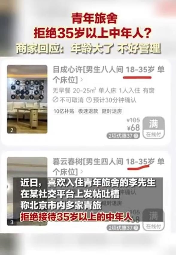 近日,#青旅不接待35歲以上人群#話題沖上熱搜,引發(fā)熱議。該話題源于一網(wǎng)友發(fā)布的帖子。該帖子表示,某平臺上北京不少青旅商家拒絕年齡35歲以上的人群入住。該網(wǎng)友詢問原因,得到的回答是“年齡大的上下床不安全容易出事?!睂Υ舜饛?fù),不少網(wǎng)友不能認(rèn)同,認(rèn)為是“借口”。