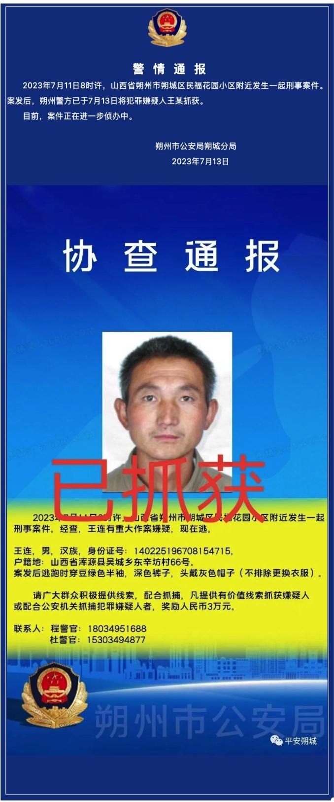·山西朔城警方通報:殺害隊(duì)長的環(huán)衛(wèi)工已被捕。