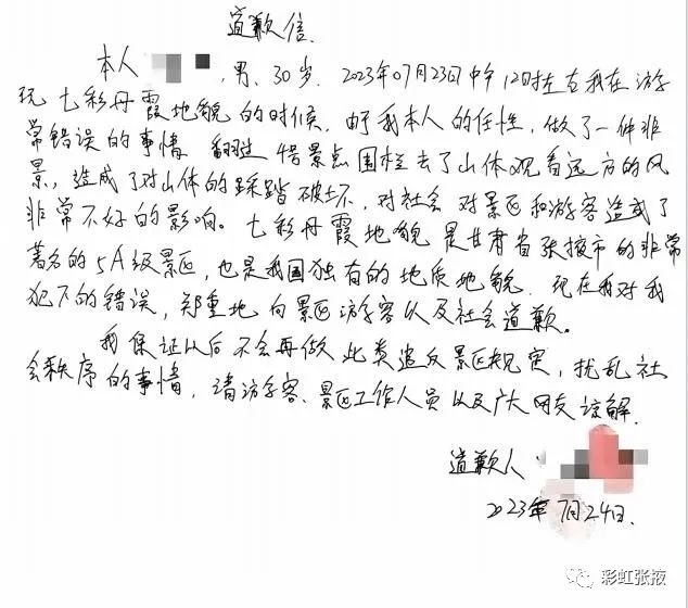 道歉信。微信公眾號“彩虹張掖”
