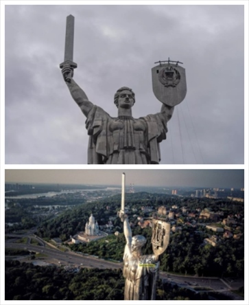 ·烏媒:基輔“祖國母親”雕像上的蘇聯(lián)國徽已更換為三叉戟。
