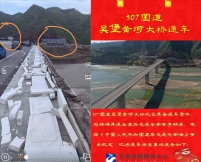 ·通車半年多,跨省黃河大橋的護(hù)欄被風(fēng)吹倒。陜西榆林市吳堡縣:成立調(diào)查組。