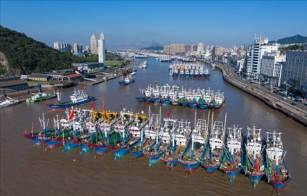 8月6日,停泊在舟山普陀沈家門漁港的漁船即將出港。專項(xiàng)特許捕撈漁船結(jié)束休漁,于6日開赴東海海域,進(jìn)行捕撈作業(yè)。