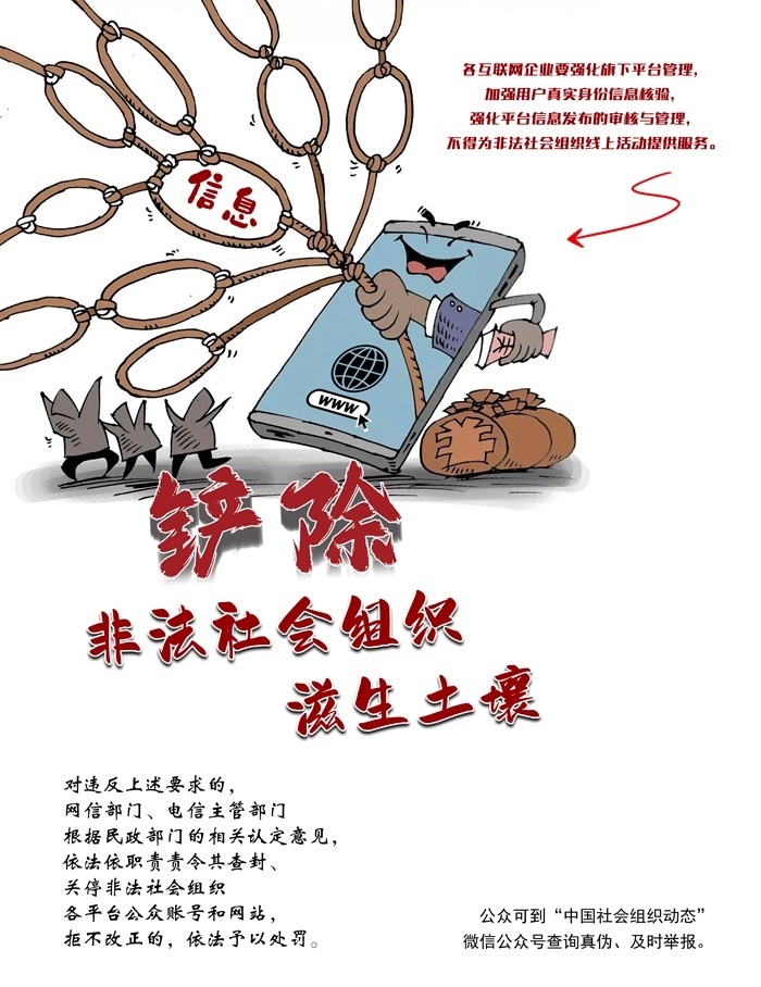 人民網(wǎng)北京8月7日電 近日,民政部社會組織管理局圍繞近期發(fā)生的非法社會組織活動進行提醒,要求各地各相關(guān)部門進一步提高政治站位,確保打擊整治工作落到實處。公眾可到“中國社會組織動態(tài)”微信公眾號查詢真?zhèn)?、及時舉報。(宋子節(jié) 實習生李珂)