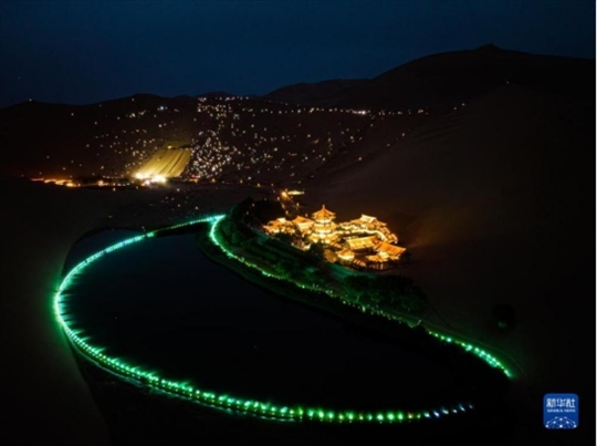近期,甘肅省敦煌市鳴沙山月牙泉景區(qū)迎來暑期游客高峰。為豐富游客體驗,景區(qū)在夜幕降臨后舉行”點亮敦煌——鳴沙山月牙泉沙漠萬人演唱會“活動。