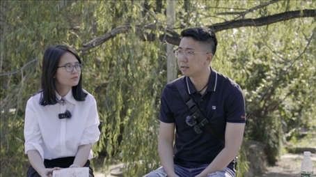 侯霄霖(右)與澎湃新聞?dòng)浾摺?/p>
