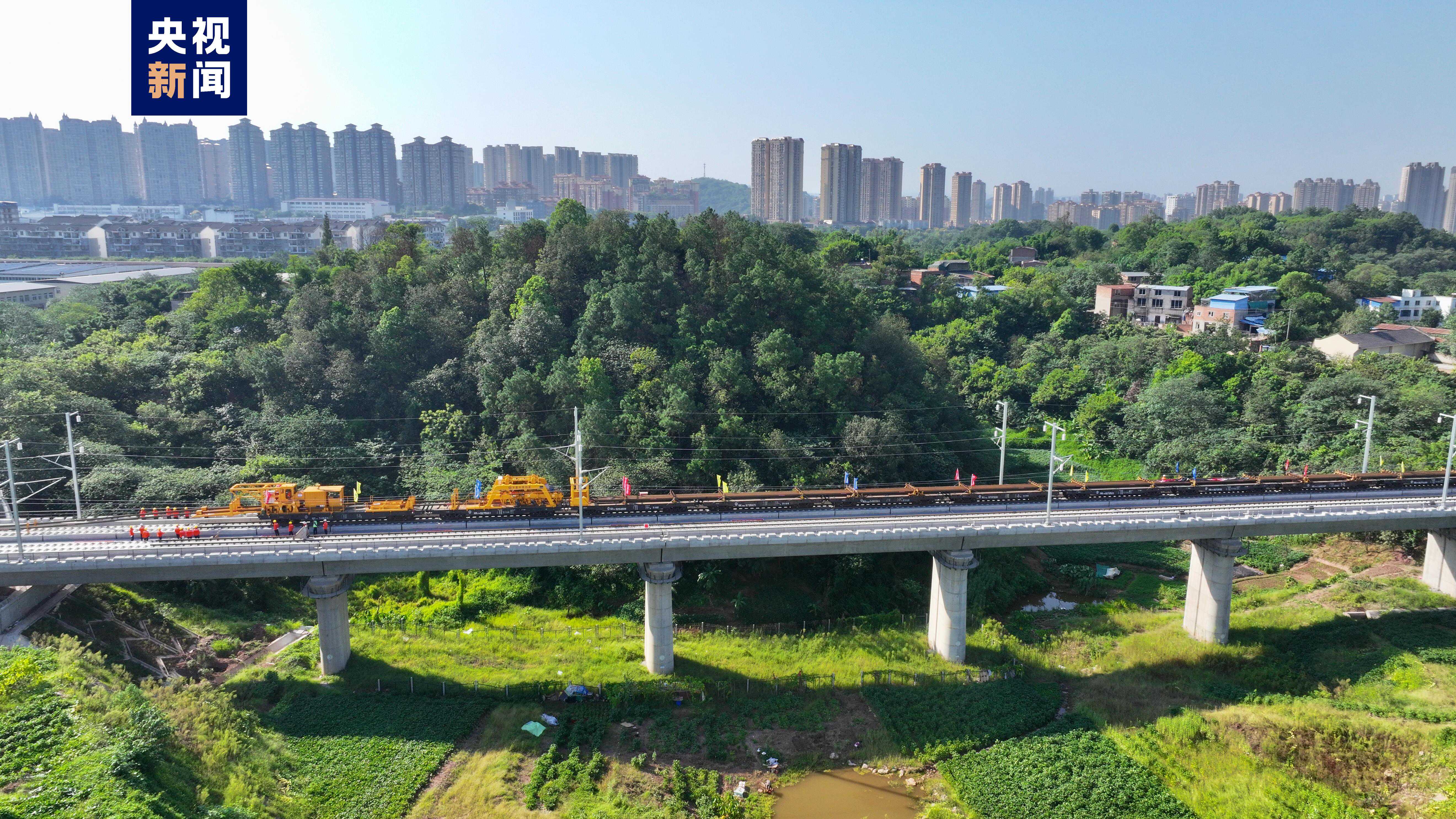 記者從京昆高鐵西昆公司獲悉,9月6日上午9時,在四川省瀘州市馮灣特大橋施工現(xiàn)場,隨著第一組500米長鋼軌穩(wěn)穩(wěn)落下,標志著重慶至昆明高速鐵路重慶至宜賓段(以下簡稱渝昆高鐵川渝段)全面進入鋪軌階段。