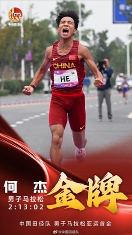 創(chuàng)造歷史!5日的杭州亞運(yùn)會(huì)馬拉松賽場上,中國選手何杰勇奪金牌,這是中國隊(duì)在亞運(yùn)史上首次獲得男子馬拉松金牌。