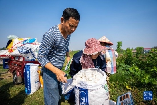 金秋十月,湖南省益陽市南縣種植的4萬余畝棉花相繼進入采收季,當?shù)孛揶r(nóng)趁著晴好天氣采摘棉花,田間地頭一片忙碌的景象。