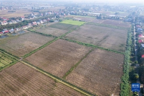 這是10月15日在南縣浪拔湖鎮(zhèn)太陽山村拍攝的棉花田(無人機照片)。
