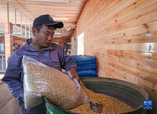 10月19日,工作人員為信鴿加工飼料。