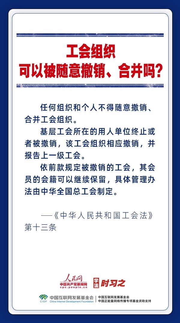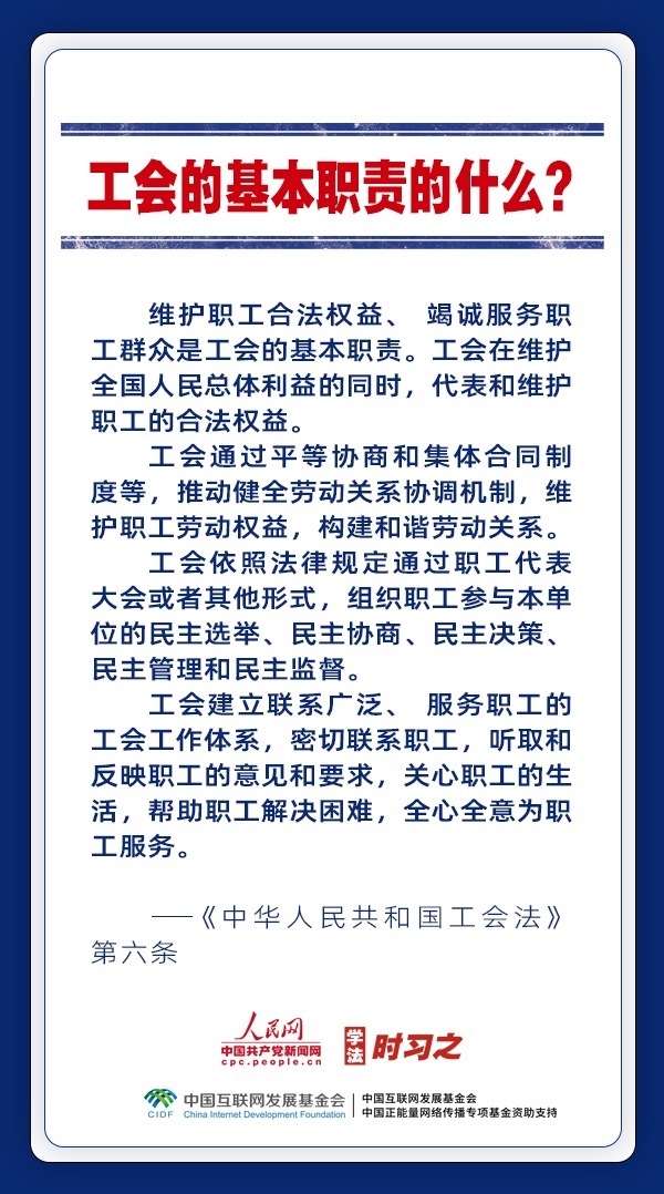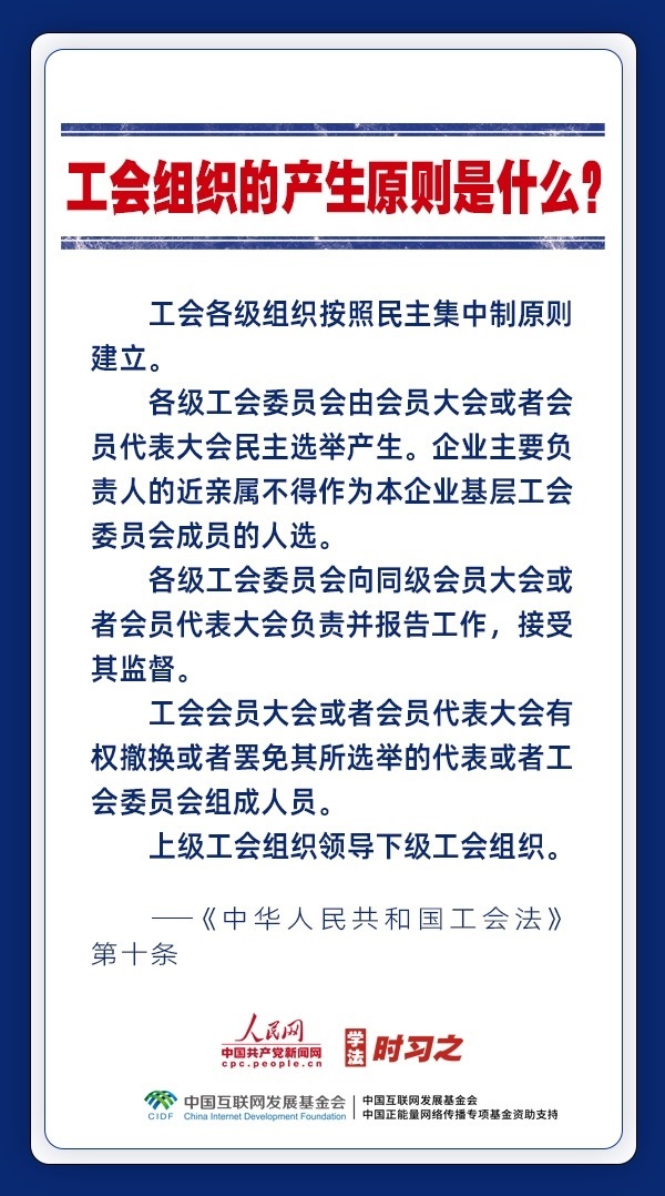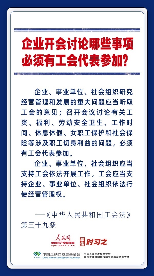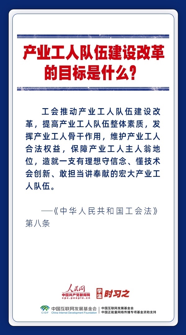 日前,中華全國(guó)總工會(huì)新一屆領(lǐng)導(dǎo)班子產(chǎn)生。黨和政府歷來(lái)重視工會(huì)的地位作用,十分注重加強(qiáng)工會(huì)法律制度建設(shè),專門為廣大職工制定了《中華人民共和國(guó)工會(huì)法》。網(wǎng)約車司機(jī)、快遞員、外賣配送員能入工會(huì)嗎?產(chǎn)業(yè)工人隊(duì)伍建設(shè)改革的目標(biāo)是什么?企業(yè)開會(huì)討論哪些事項(xiàng)必須有工會(huì)代表參加?一起來(lái)了解。