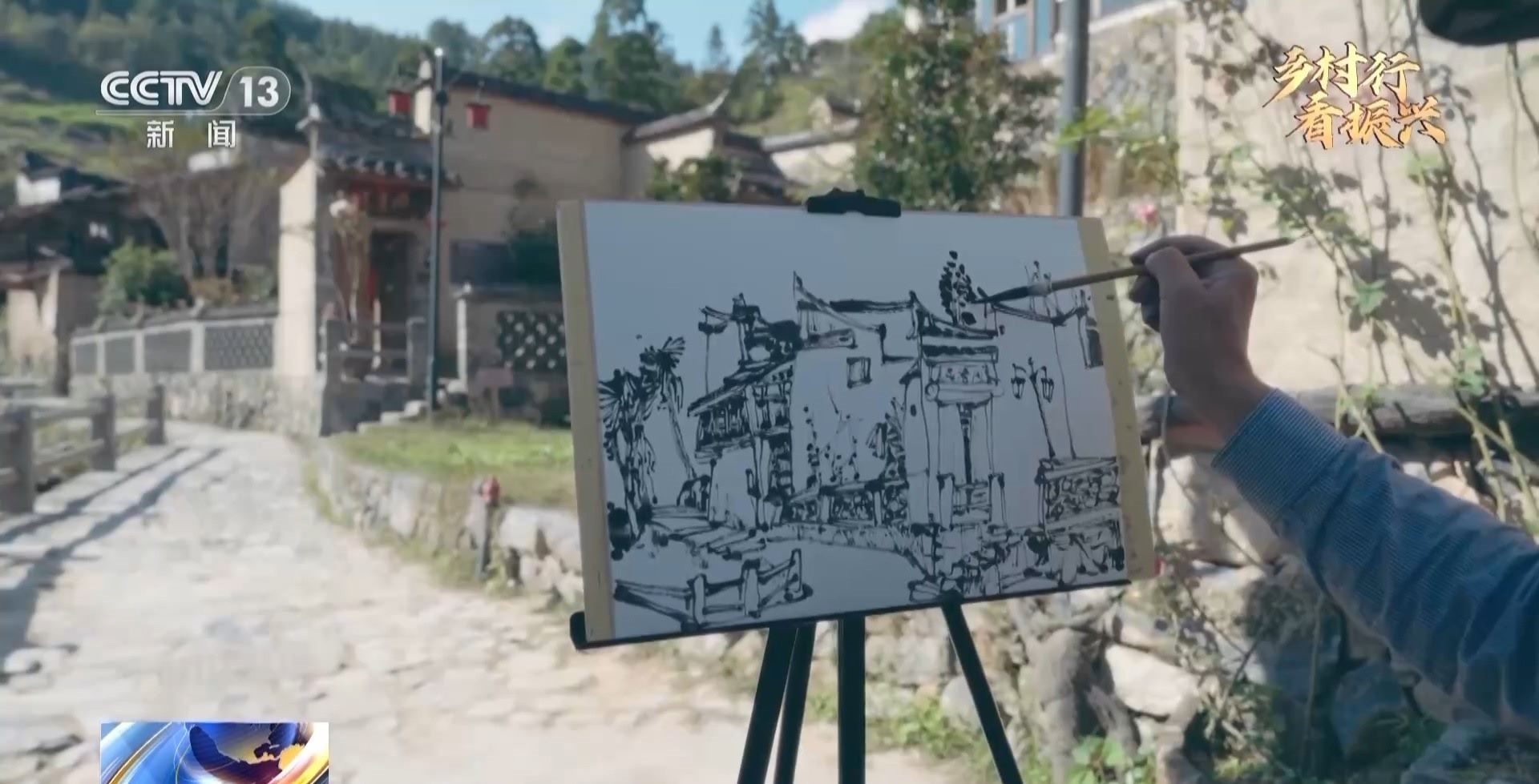 總臺(tái)記者 林姍蓉:這里就是龍?zhí)洞濉Q刂宦吠?,你可以看到兩岸都是這種高低錯(cuò)落的土夯的民居。這個(gè)季節(jié)柿子都熟了,到處都可以看到村民曬柿餅、曬稻谷,黃綠交錯(cuò)的,非常好看。來到龍?zhí)叮€有一點(diǎn)非常讓我印象深刻,就是在這里每走幾步,我都可以看到一個(gè)正在寫生創(chuàng)作的藝術(shù)家。