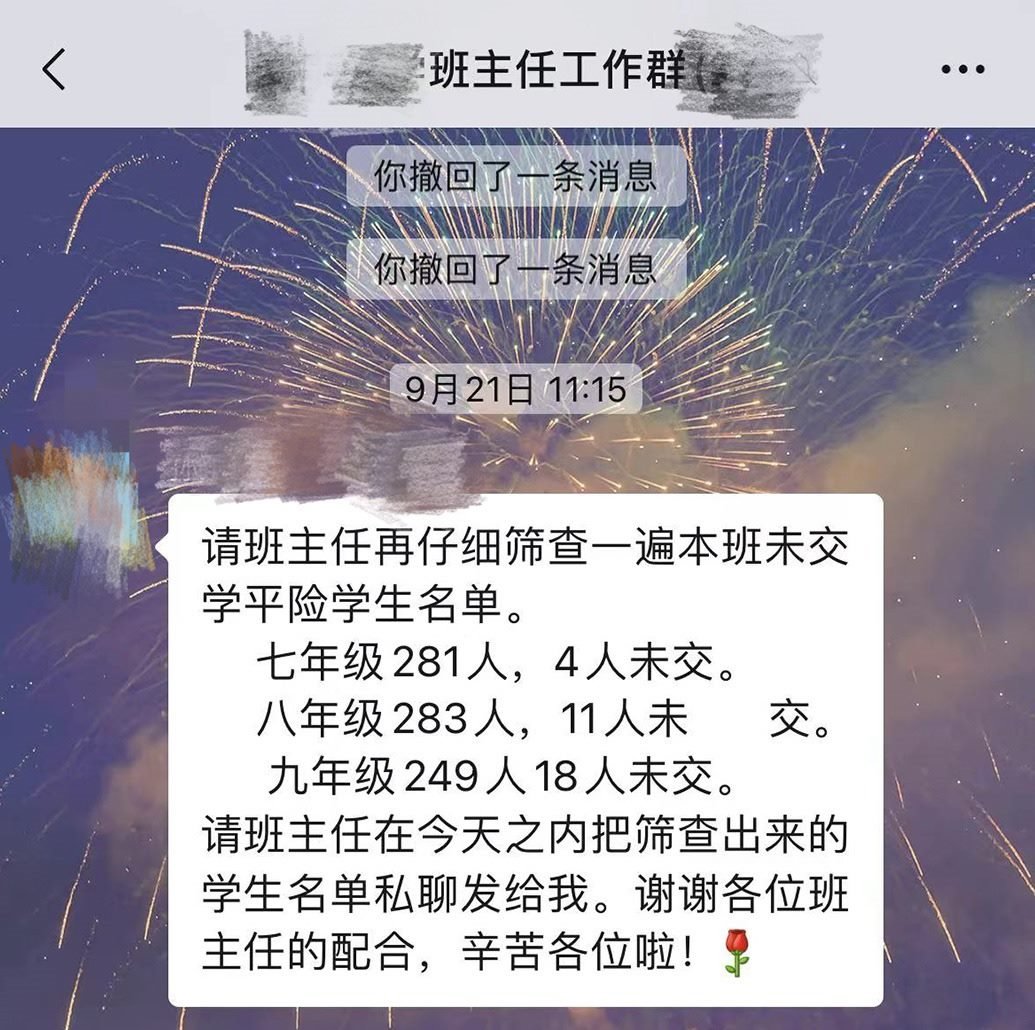 她要反復叮囑學生,同時在家長群一一驗收,“力求100%完成”。因為這些任務(wù)大多與她的績效掛鉤。但并非所有家長都愿意配合,因為需要確認的通知太多,她還為此被家長告到教育局。