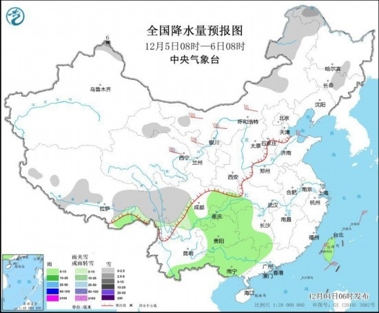 全國降水量預(yù)報圖(12月4日08時-5日08時)