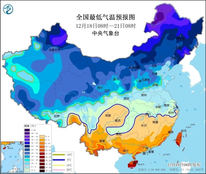 人民網(wǎng)北京12月18日電 (記者溫璐)據(jù)中央氣象臺網(wǎng)站消息,未來五天,我國大部地區(qū)氣溫持續(xù)偏低。預(yù)計12月18日8時至21日8時,新疆北部、西北地區(qū)中東部、內(nèi)蒙古、華北地區(qū)、東北地區(qū)、黃淮、江淮、江漢、江南北部、貴州等地部分地區(qū)日最低氣溫較歷史同期偏低5℃以上,其中西北地區(qū)東部、內(nèi)蒙古、華北地區(qū)、東北地區(qū)、黃淮中東部、江淮東部等地部分地區(qū)日最低氣溫較歷史同期偏低7℃以上,最低氣溫0℃線將位于貴州南部至江南北部一帶。中央氣象臺12月18日6時繼續(xù)發(fā)布低溫黃色預(yù)警。