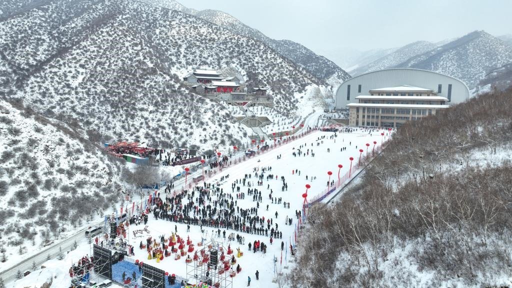 2023年12月30日,游客在內(nèi)蒙古卓資縣林胡古塞景區(qū)參觀游玩(無人機照片)。新華社記者 貝赫 攝