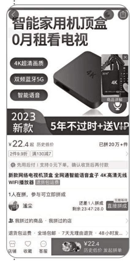 2023年2月份,溫州市市民黃先生在某直播間購買一款知名品牌機頂盒,主播介紹,這款機頂盒不用付費就可以收看各類熱播網(wǎng)劇。但黃先生使用一段時間后,機頂盒經(jīng)常出現(xiàn)無信號、黑屏等現(xiàn)象。警方介紹,犯罪嫌疑人將廢舊機頂盒拆解、翻新,貼上某知名品牌商標,再通過技術(shù)手段破解為“免費版”,并重新包裝。以低于正品50%的價格在各大直播平臺銷售牟利。
