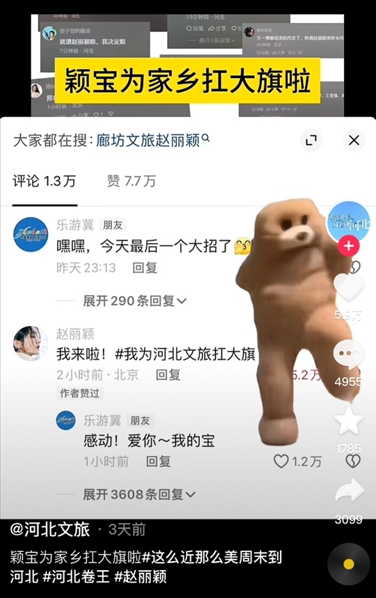 這還還還不夠,河北文旅也“搖人”了,趙麗穎、孫穎莎等一眾名人被請(qǐng)了過(guò)來(lái)為家鄉(xiāng)助力!