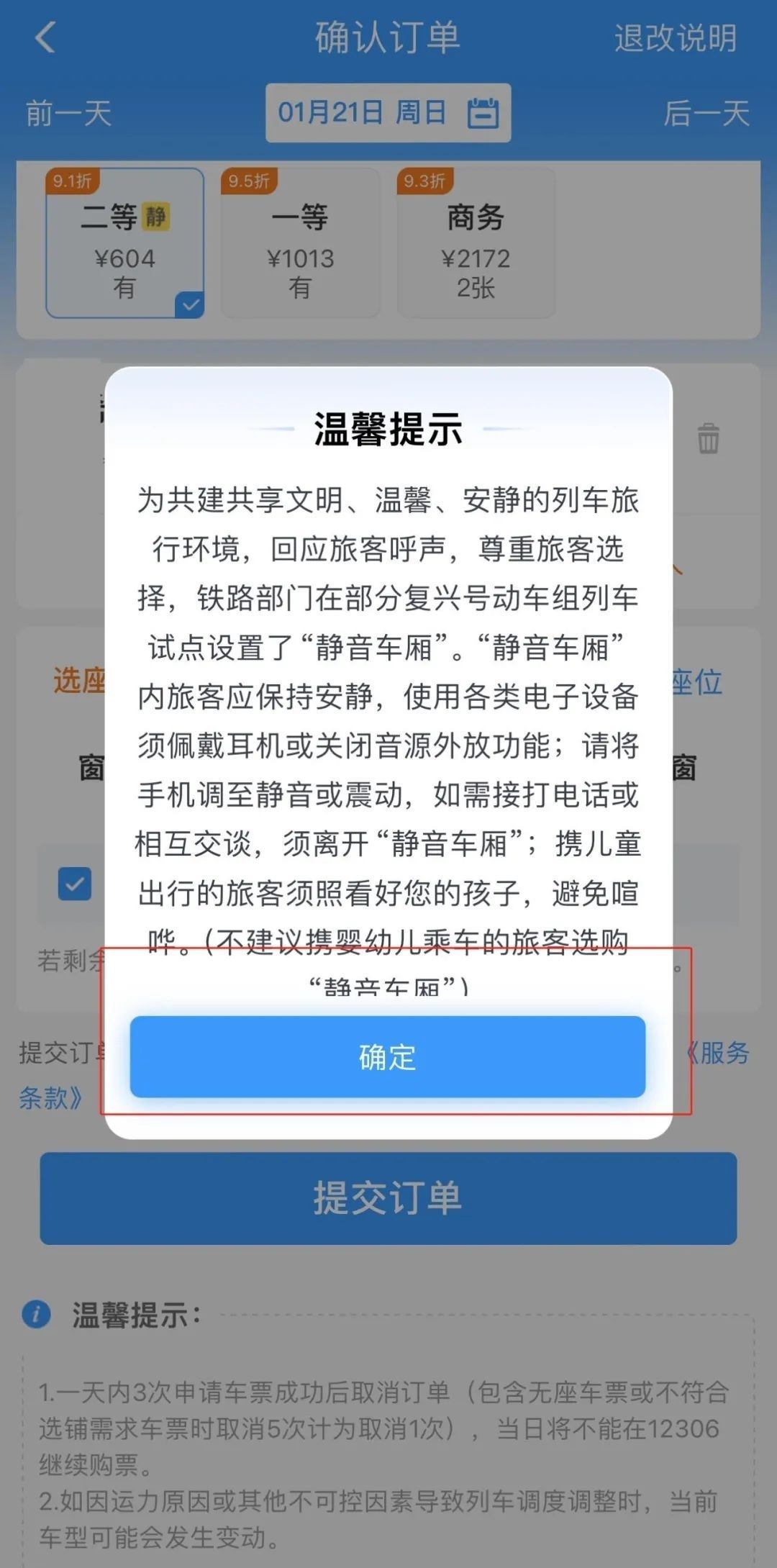 購買靜音車廂車票