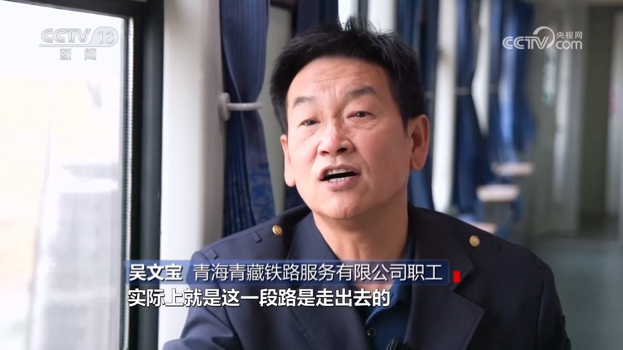 青海青藏鐵路服務(wù)有限公司職工吳文寶:“不能等著雪化了再把車開出去,我們就是司機(jī)開車,我在前面拿著個(gè)竹竿撥拉,看看怎么走,實(shí)際上這一段路是走出去的?!?/p>