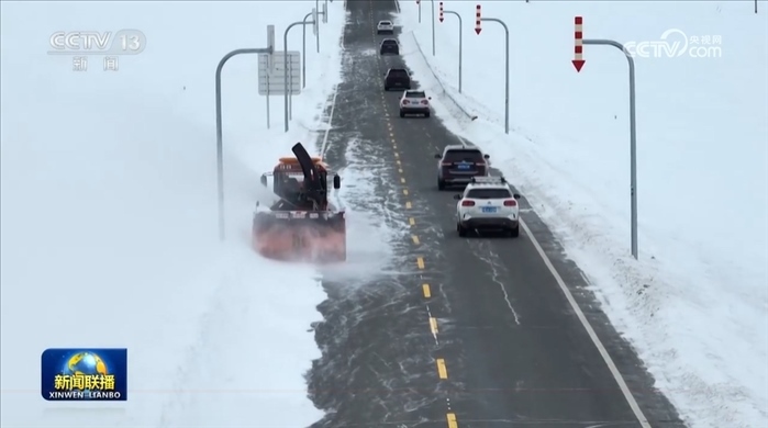 央視網(wǎng)消息(新聞聯(lián)播):從昨天(2月15日)開始,新疆多地出現(xiàn)強(qiáng)降雪,氣溫普降8℃—12℃,阿勒泰地區(qū)局部降溫幅度達(dá)到24℃以上。阿勒泰、巴州等地多條國(guó)道省道部分路段出現(xiàn)風(fēng)吹雪,能見度較低,交警和公路管理部門進(jìn)行臨時(shí)性交通管制,組織除雪設(shè)備清理路面積雪。在和靜縣,工作人員為被困車輛駕駛員送來食物和水。