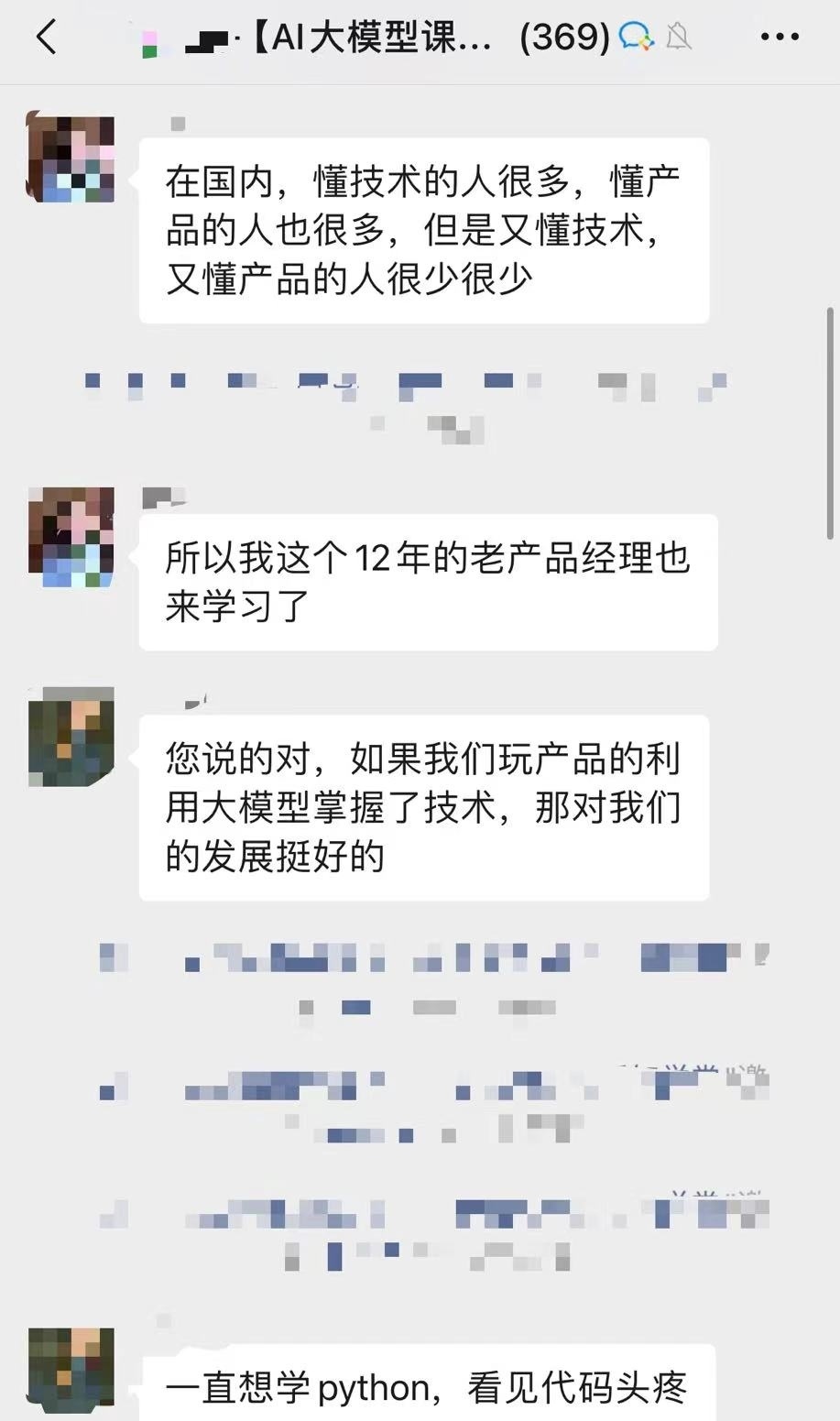 某AI大模型交流群內(nèi),有成員解釋自己學習相關(guān)課程的原因。