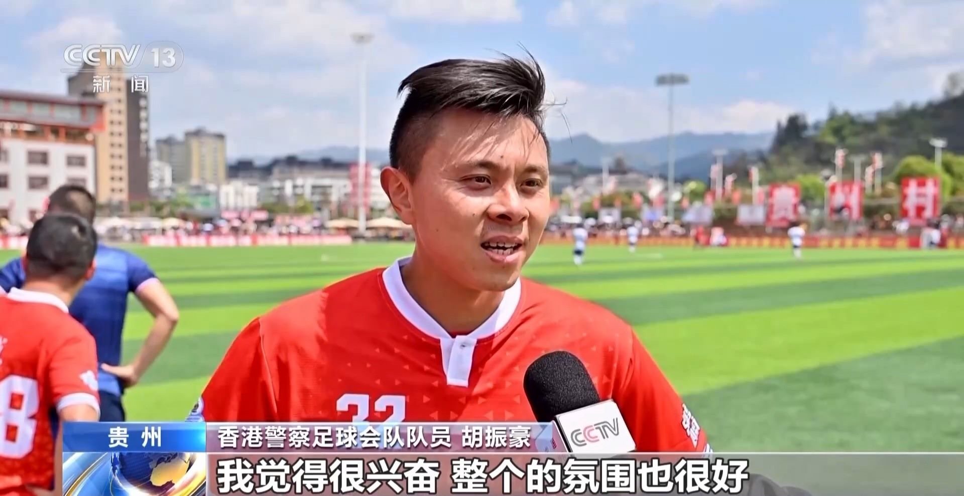香港警察足球會(huì)隊(duì)隊(duì)長(zhǎng) 陳憲鈞:這是我們第一次來貴州,給我們的印象很深,人們都很熱情,我們很開心來到這里,因?yàn)樵谙愀畚覀円部催^“村超”的現(xiàn)場(chǎng),所以我們有機(jī)會(huì)來到這里,跟大家一起踢(足球),我覺得非常開心。我們希望可以跟尤其是年輕人多交流,讓他們認(rèn)識(shí)我們香港警隊(duì)。